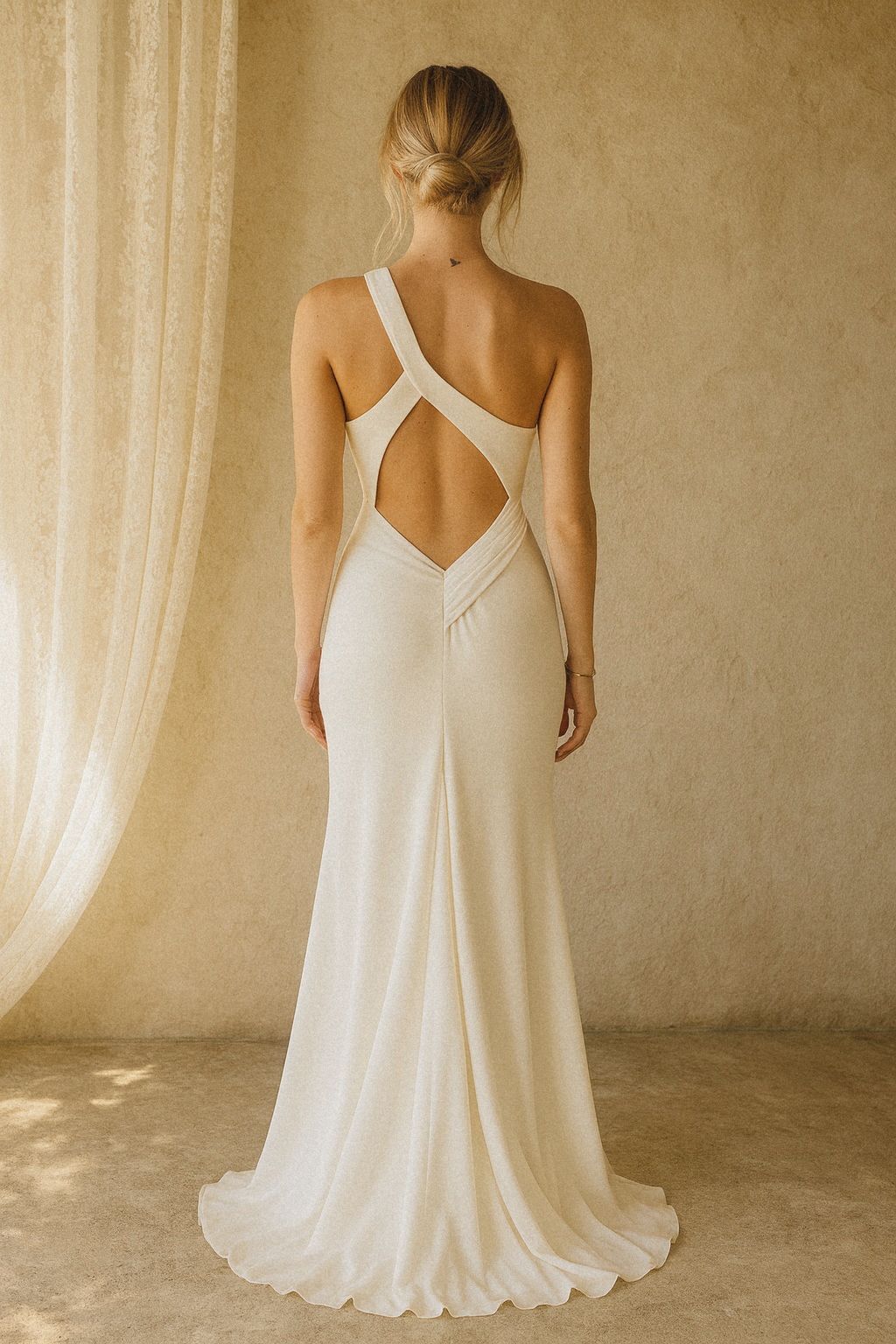 "The fabric quality is outstanding. My dress felt luxurious but not overdone - perfect for our vineyard wedding in Napa."