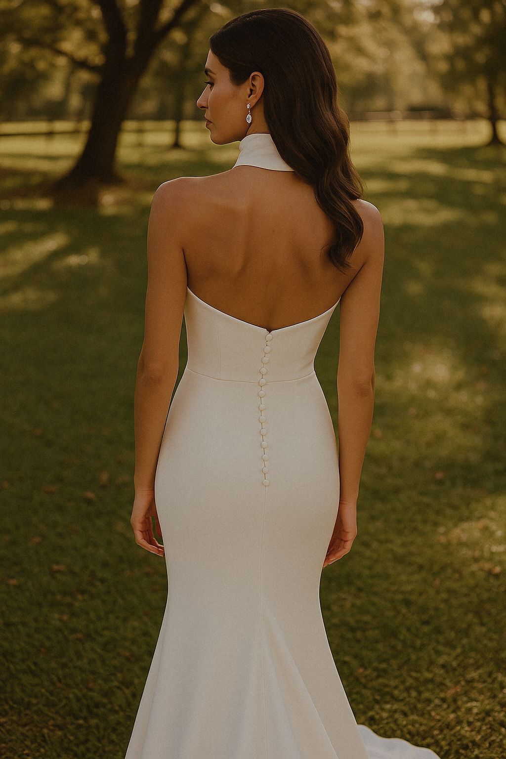 "The fabric quality is outstanding. My dress felt luxurious but not overdone - perfect for our vineyard wedding in Napa."